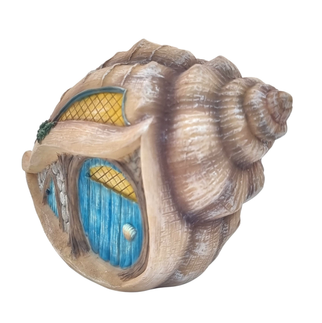 This Conch Shell House has a magical large round blue door for entry into an enchanting underwater world full of mermaids and other magical creatures. There is also a smaller hidden door leading to secret passage ways and more enchanting discoveries.