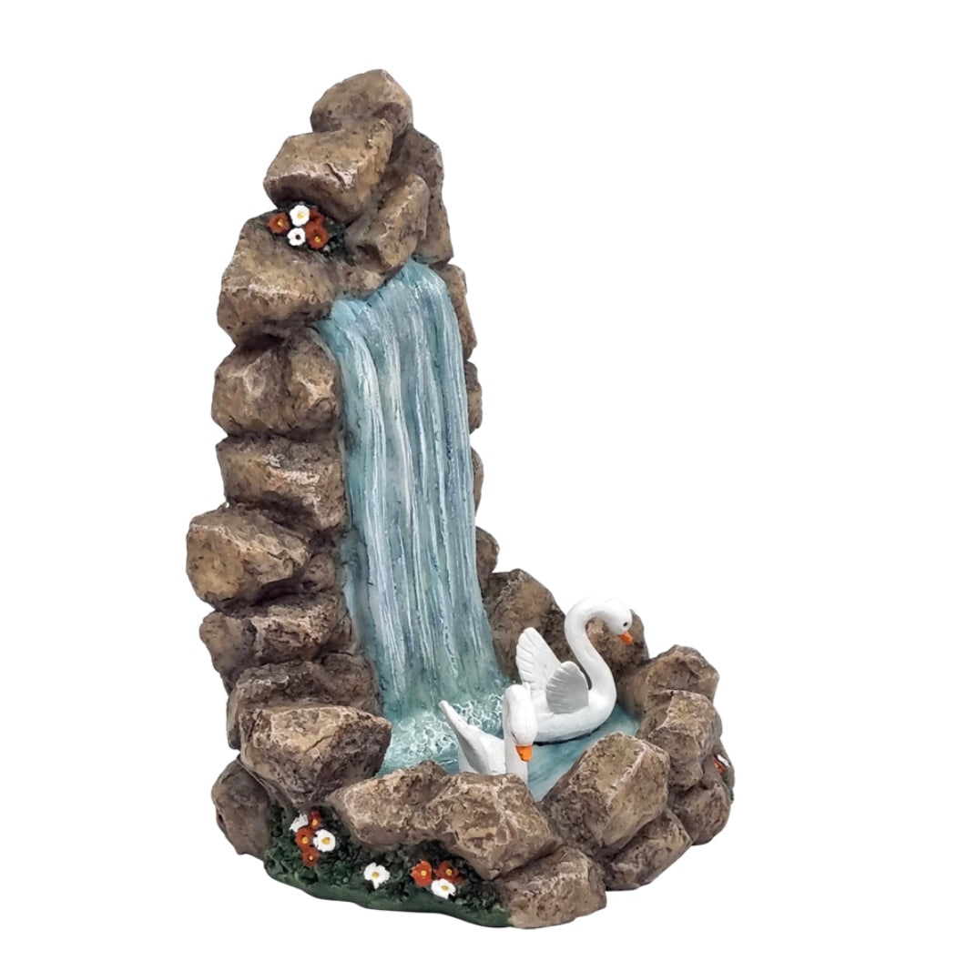 This is a stunning piece with two beautiful magical swans swimming at the bottom of a waterfall.